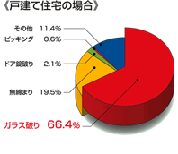 | 以下、上記の「3つのポイント」を細かく説明したいと思います 「侵入盗(空き巣、忍び込み、居空き)」は、必ず下見をして家の外観から「留守がち」「入りやすく逃げやすい」といった家に狙いをつけるといわれています。 ![]() 1.狙われにくくする。 ☆周り(道路)から、家の中は見えないように、敷地はよく見えるようにする。 ☆垣根は作らない、又は、低くする(限度140cmぐらいまでに) ☆音のしやすい砂利を敷きつめる ☆表札はフルネームで表示しない(表札から住所、電話番号を調べられる事があるので) ☆ポストは外部の者から見られないようにする(郵便物から住所、電話番号が調べられる事があるので) ☆ベランダに人が隠れてもわからないような構造にしない、又は見通しの良い物にする ☆番犬を飼う ☆帰宅が遅くなる日は洗濯物を室内に干す ☆普段から地域ぐるみで防犯意識を持つ ☆旅行のときには新聞を止める ☆「○○まで不在です」と留守番電話の応答メッセージにしない 2.侵入しにくくする。 ☆ 格子を取り付ける ☆雨戸、シャッターを取り付ける ☆防犯ガラス・ワイヤーガラス ☆カギを2重にする ☆外部にフェンス・門扉・カーゲート・・・を取り付ける ☆ピッキング対策 ☆防犯フィルムを貼る ☆センサー付き防犯ライトを設置する ☆センサー付き防犯ブザーを設置する ☆歩くと音がしやすい砂利などを敷きつめる ☆補助錠を取り付ける(←これは意外と効果があります) ☆2階へ登りにくくする(足場になりそうな物、脚立・・・等を家の周りに置かない) 3.異常を知らせる ☆鍵が開いた事をアラームでしらせる設備を設ける(鍵が開いた瞬間、携帯電話や警備会社へ通報できるものもあります) ☆ガラス等に衝撃が加わると警報で知らせる防犯センサーを取り付ける ☆侵入者を感知すると、あらかじめ録音しておいたメッセージ等で威嚇するセンサーボイス等を設置する 以上の事を参考にして、あまり神経質にならず、、ご自分の家で、できる事から実行してゆけばいいと思います 一般的防犯とは言われていませんが、あくまで私の意見ですが、内窓を取り付けるとこじ開けるのにかなりの時間がかかるため内窓も効果があると思います |